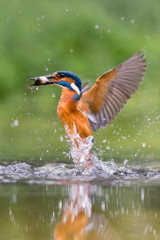 I have created a natural looking set for the sole purpose of obtaining images of kingfishers fishing. Once I have positioned your camera you should be able to obtain shots of the birds entering and exiting the water. Every dive is different and therefore your images will have a variety of poses.
